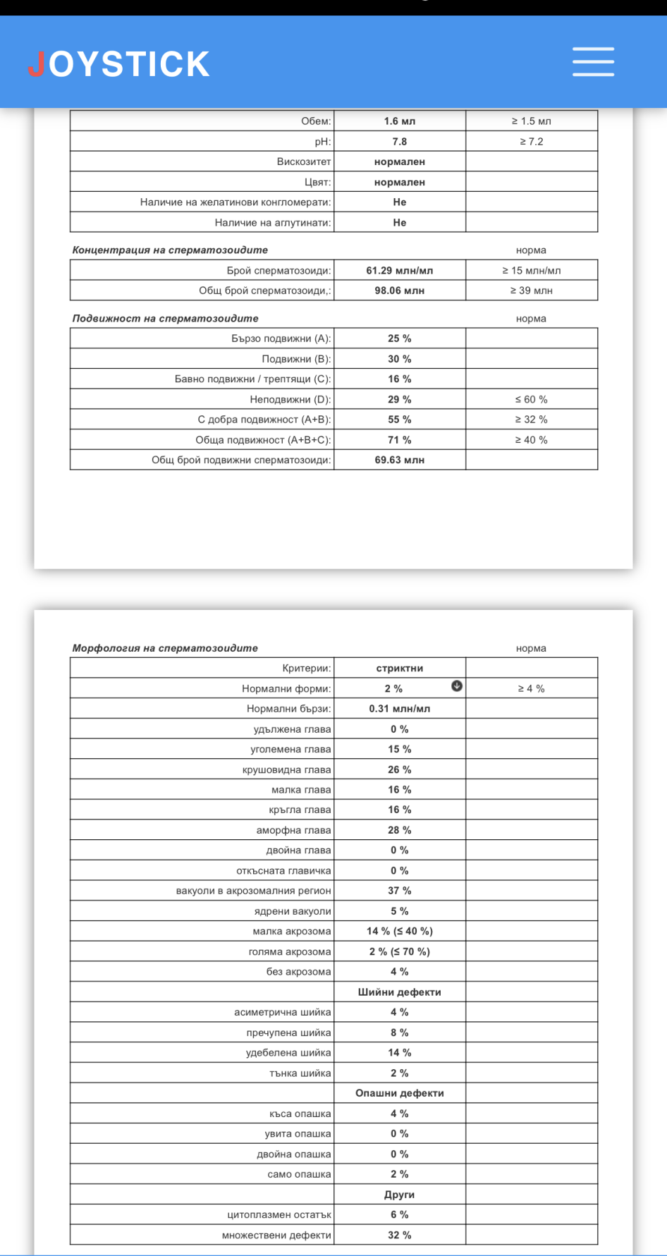 Момичета, пуснахме Днк фрагментации . Моля , за мнение някой със сходна спермограма .