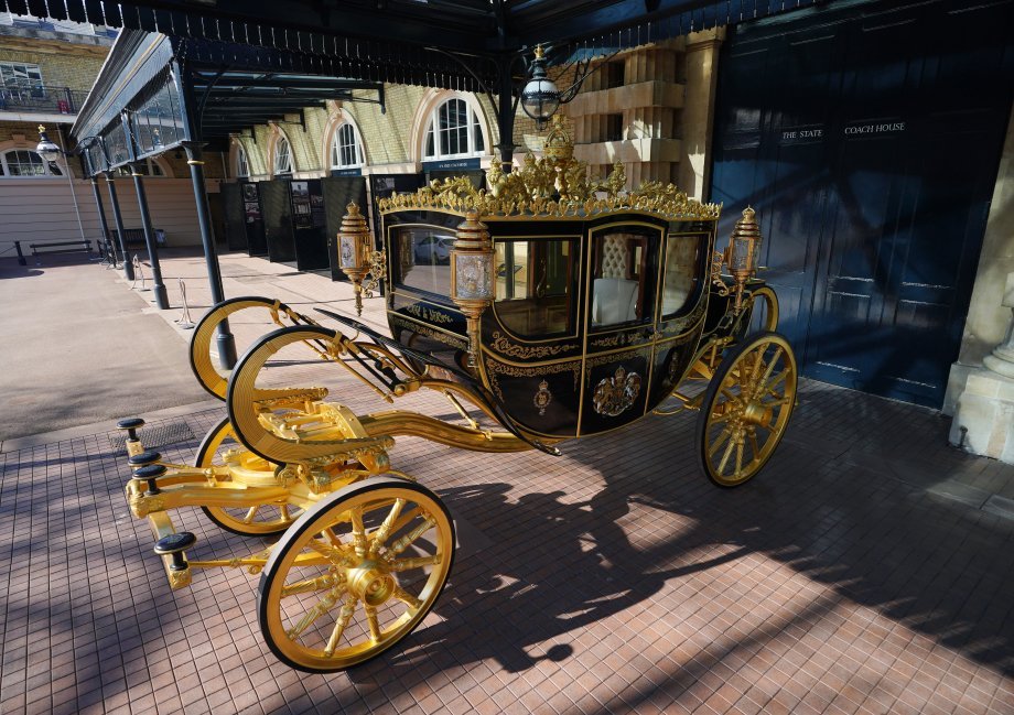 Сутринта на 6 май Техни Величества ще пътуват от Бъкингамския дворец с Кортежа на краля до Уестминстърското абатство с каретата Diamond Jubilee. Създадена за кралица Елизабет II, за да отбележи 60-ата годишнина от управлението на покойното Нейно Величество през 2012 г., каретата винаги е превозвала само суверена, понякога придружен от съпруга или гостуващ държавен глава.