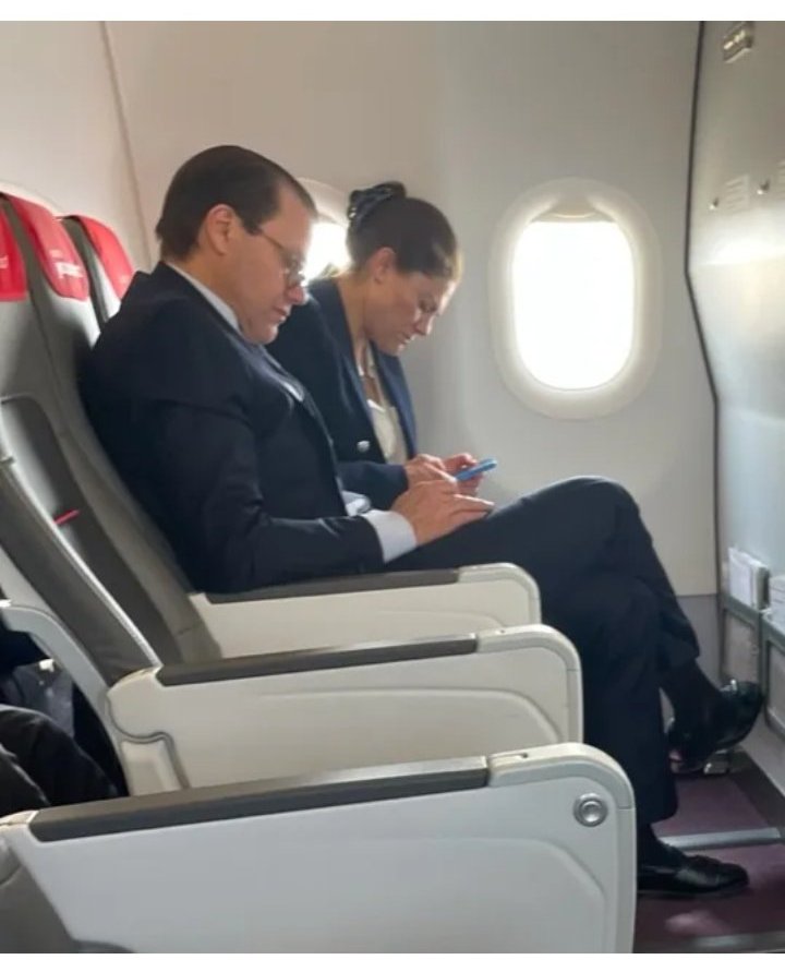Между другото: Не само тя се настани удобно, но и принц Даниел. Той си събу обувките по време на полета.