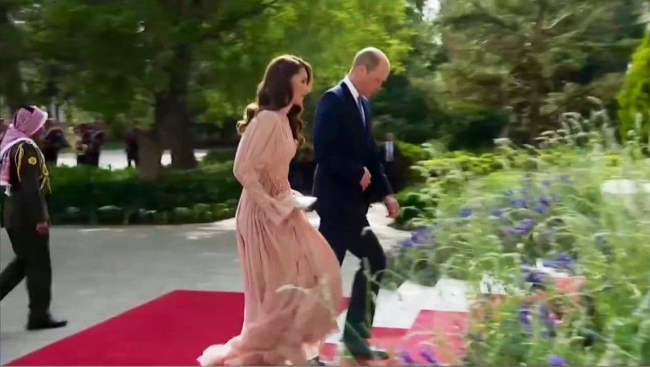 Оо, роклята на Катрин е Ели Сааб, дизайнер от Ливан. Хубаво е, че не е заложила на европейски дизайнер, а на такъв от Близкия изток