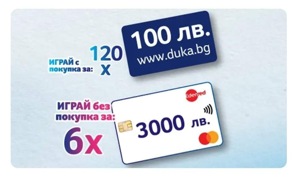 🎁 294бр. Gift Card Edenred на стойност 100лв. ( Всеки ден по 6бр. ) - регистрация на поне 1 код от промо опаковка