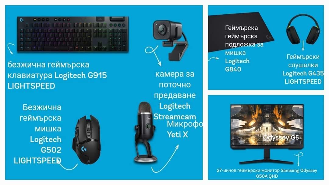 🎁 Всяка седмица - 1 комплект съдържащ - геймърска мишка , геймърска клавиатура , камера, микрофон , подложка за мишка и 27 инчов монитор Samsung ( общо 21бр. )