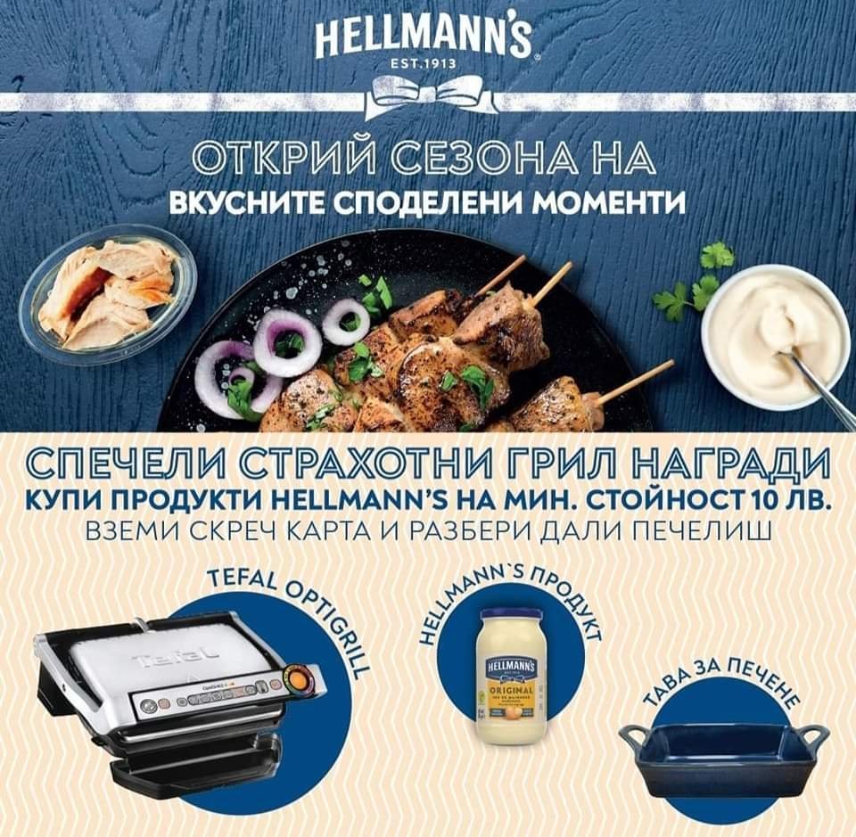 Купи продукти Hellmann's на стойност минимум 10лв. , изтъркай скреч карта на място в някой от Участващите Търговски обекти и можеш да спечелиш: