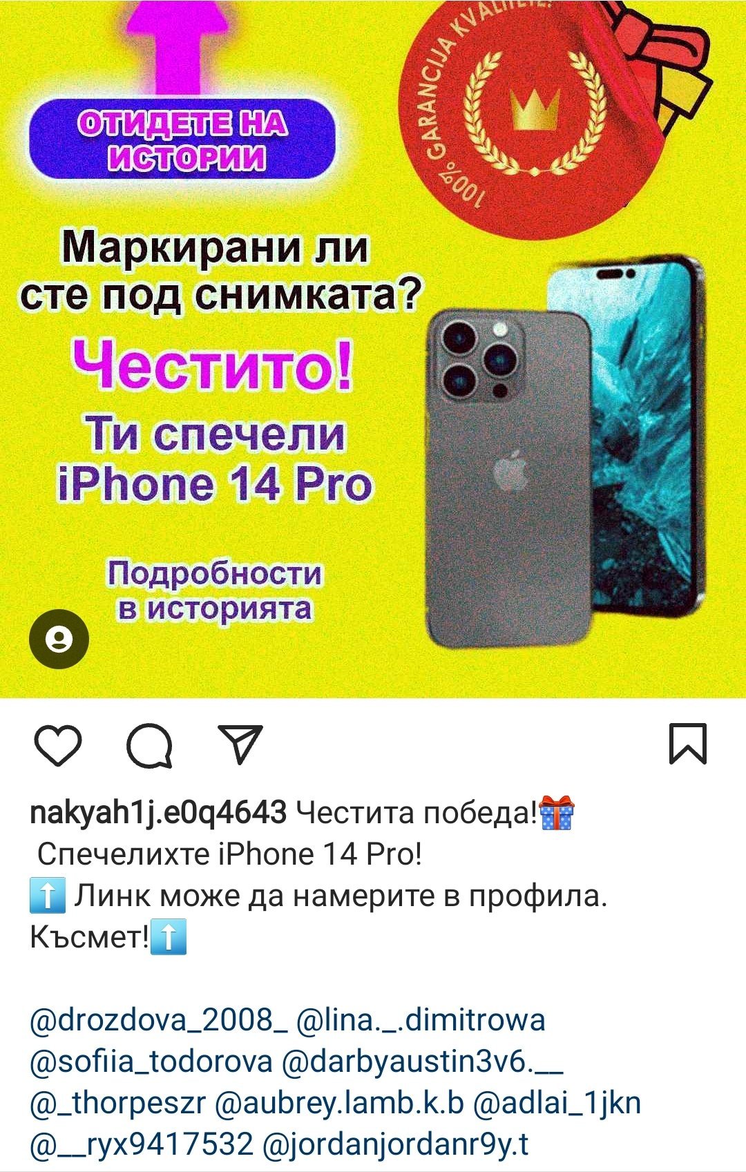 Аз колкото айфони спечелих от седмица насам магазин можех да отворя ако не беше измама..писна ми да ги блокирам инстаграма хич не прави някакви защити от спам и мошенници.