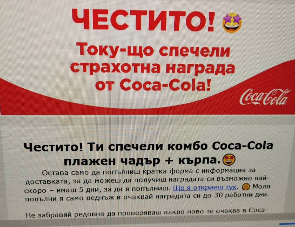 Аз току що получих мейл от кока кола-печеля тиган за палачинки. Не съм участвала в последните тегления