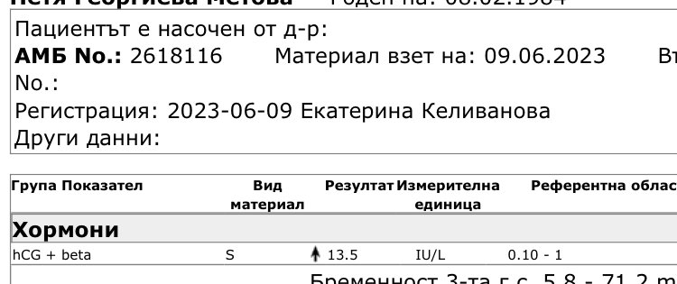 След трансфер на петия ден, бластоцистът продължава да се развива. На ден 1 обвивката на бластоциста започва да се пука, а на дни 2 и 3 той се закача към маточната стена и започва имплантацията. На ден 4 и 5 имплантацията продължава, като на ден 5 тя е завършена, клетките, които впоследствие ще се превърнат в плацента и фетус, вече са започнали да се развиват. На ден 6 hCG навлиза в кръвта, а на дни 7 и 8 феталното развитие продължава и hCG продължава да се секретира.