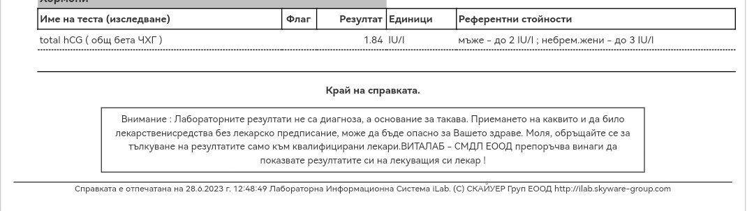 След трансфер на петия ден, бластоцистът продължава да се развива. На ден 1 обвивката на бластоциста започва да се пука, а на дни 2 и 3 той се закача към маточната стена и започва имплантацията. На ден 4 и 5 имплантацията продължава, като на ден 5 тя е завършена, клетките, които впоследствие ще се превърнат в плацента и фетус, вече са започнали да се развиват. На ден 6 hCG навлиза в кръвта, а на дни 7 и 8 феталното развитие продължава и hCG продължава да се секретира.