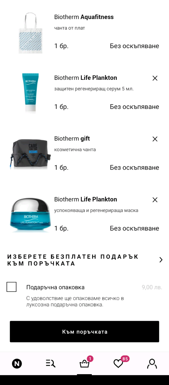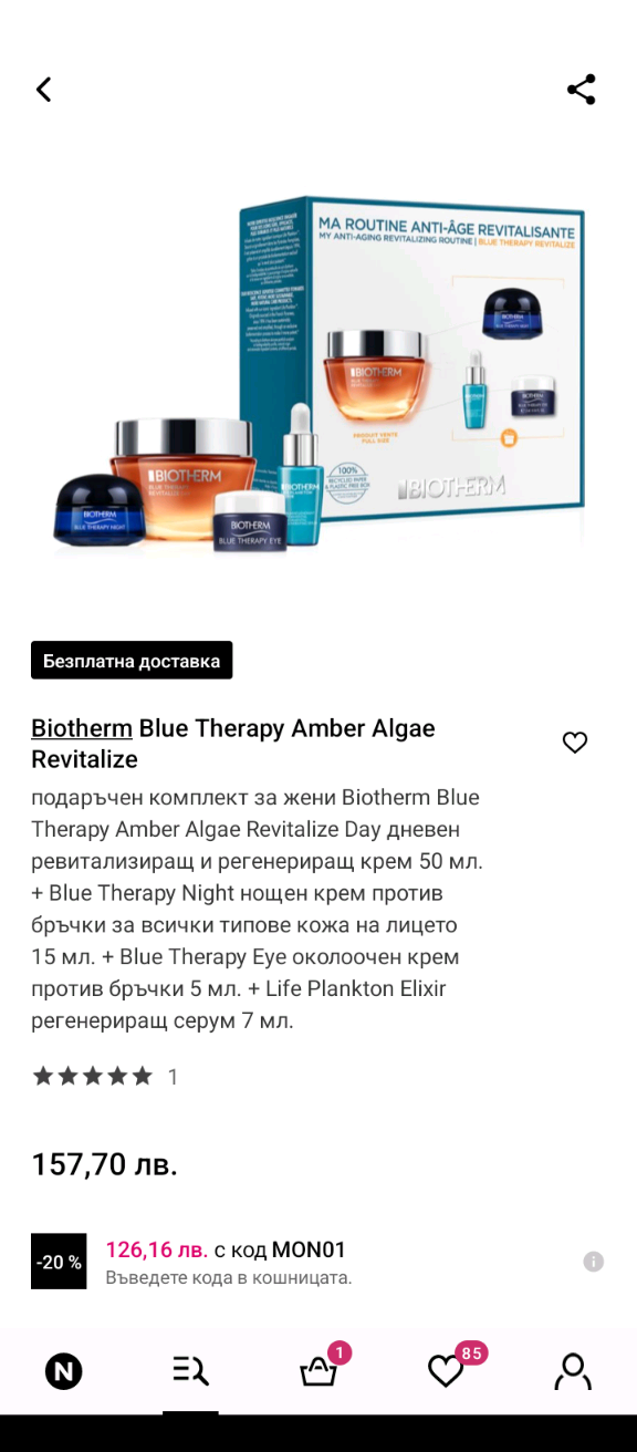 Днес получих този комплект на Biotherm на цена от 140 лв+ доста подаръчета.Гледам ,че днес с кода е още намален на 126 лв и подаръците стоят.Има само 1 брой ако някой иска да се възползва.