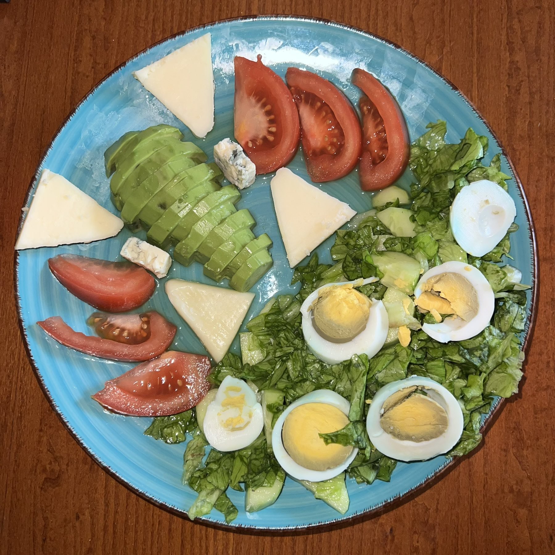 Това е от предните дни, картофена каша и салата с домати и краставици.