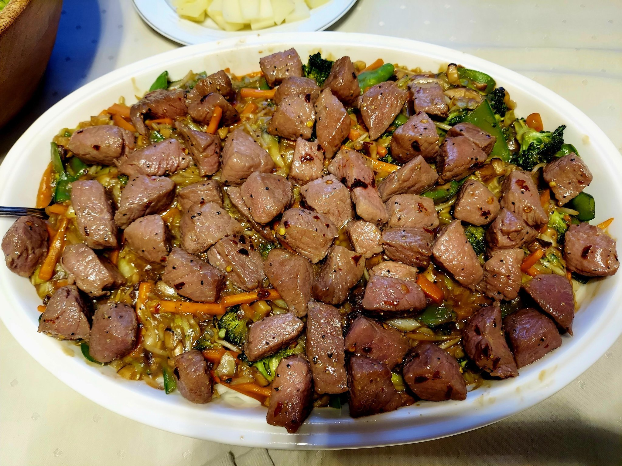 Нудъли ло мейн със сърнешко, уловено от мъжката Туна