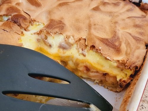 Сандвич за закуска, пиле с ориз и най-после доготвих останалия ревен на сладкишче с крем и меранг, но не беше достатъчно количеството и добавих ябълки. Мерангът нямах търпение нито да го разбия до край нито да го доопека, и си остана и той като крем 😁