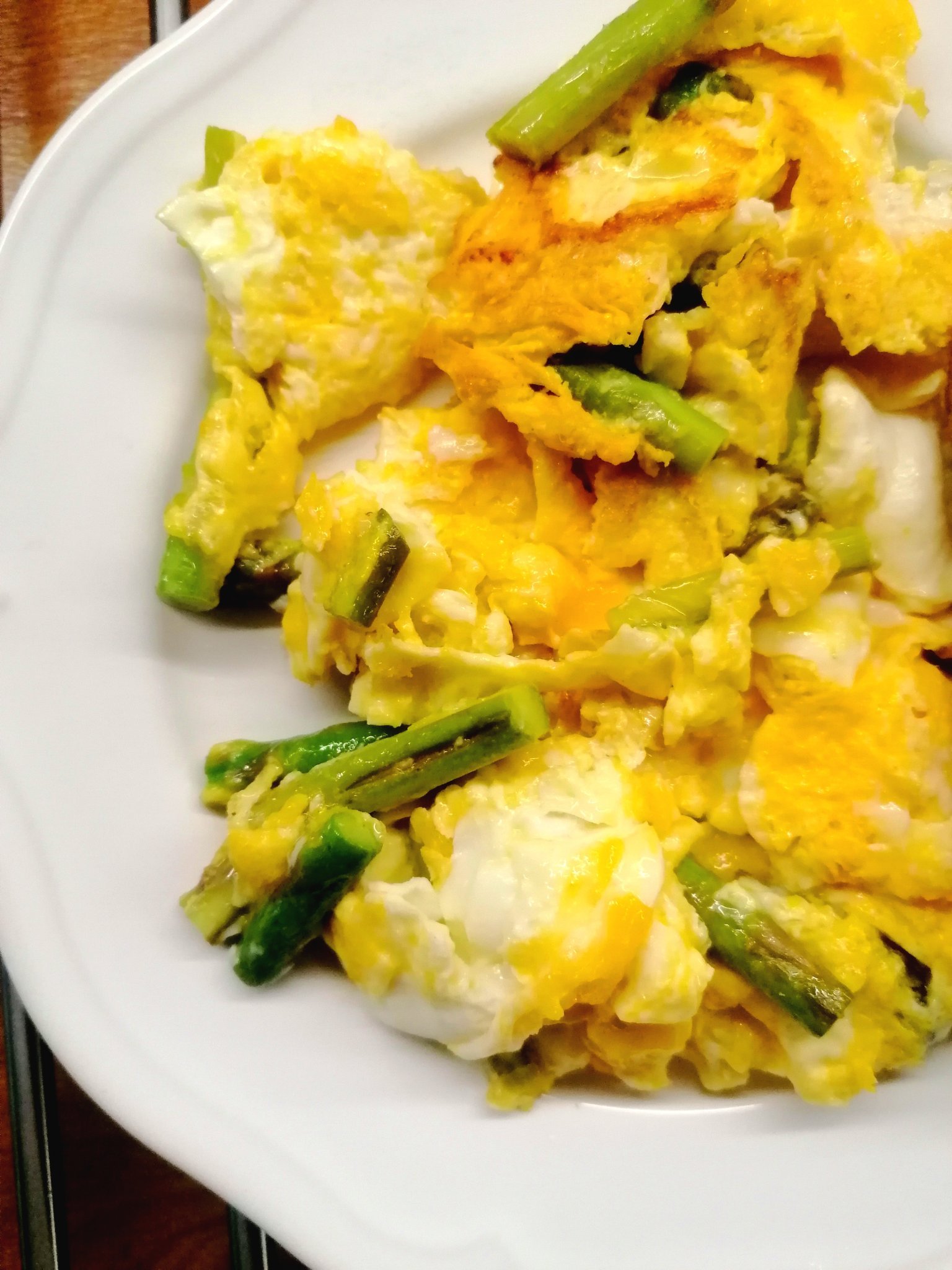 Едни бъркани яйца с аспержи...става и за вечеря и за закуска. А за моя син по всяко време:)