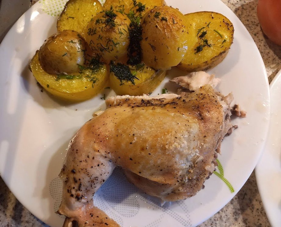 Цяло пиле пекох вчера, но във фурната цветът не стана както на грила.