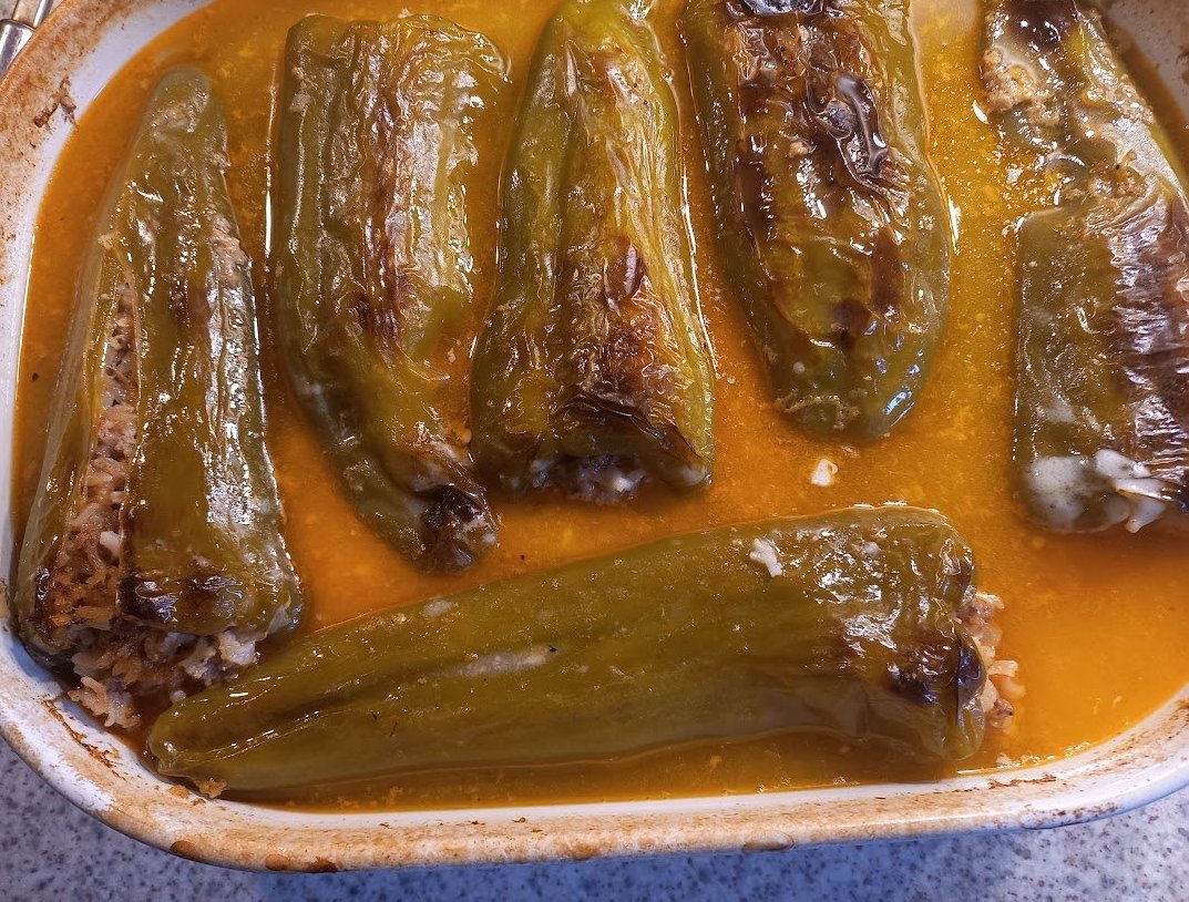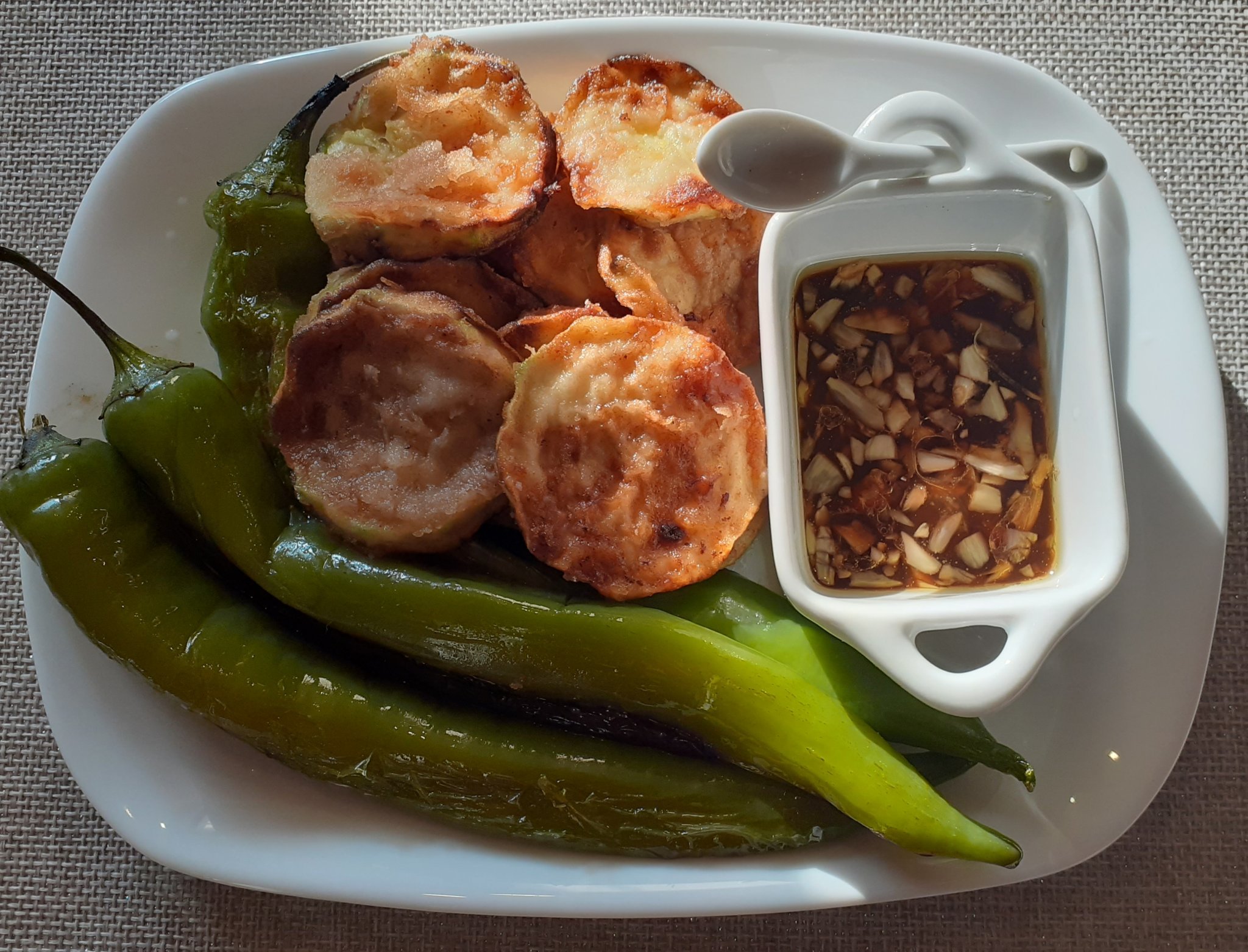 Пържени чушки с дресинг от оцет, зехтин, сол и чесън;