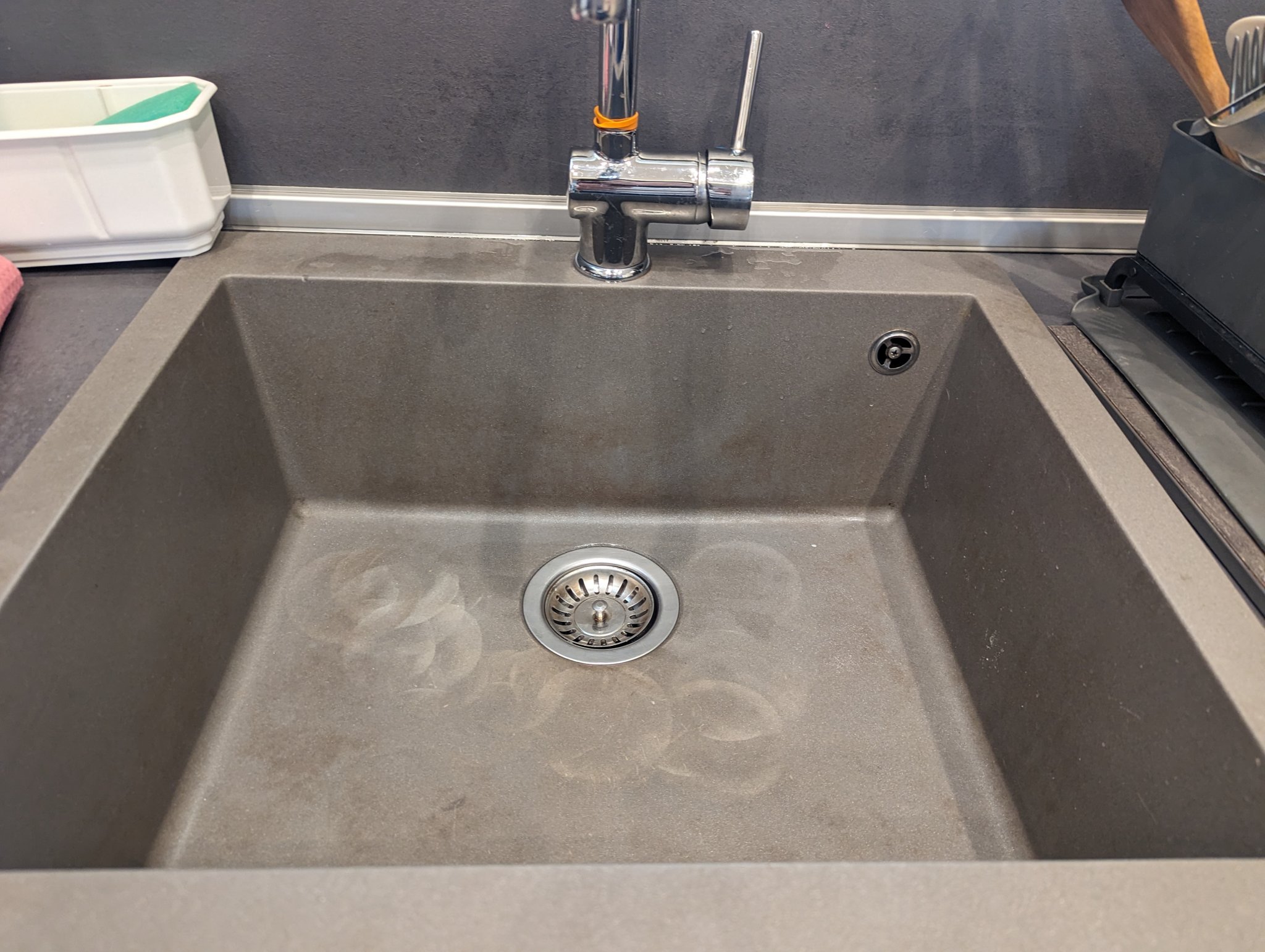 Става въпрос за това - една жена почисти апартамента вчера вечерта, като след това видях петна по мивката (гранит, композит, Eurolux). Изглежда сякаш повърхността на дъното е разядена от нещо (помислих, че киселинен препарат).  Звъннах й, каза, че не е ползвала силни препарати (само препарат за стъкло). Загледах се и се замислих дали това не е по-скоро петно от изгоряло (например горещ съд - кафеварка, макар че нямам спомен да съм поставяла вряла кафеварка директно в мивката, абсурдно е). После звънях на фирмата  производител, оттам съвсем ме отчаяха - нямало оправия, те не шкурили, не полирали тези мивки, да мисля за нова (!!!). После звънях на майстори, които намерих - и те не били виждали и обработвали в живота си такова нещо.