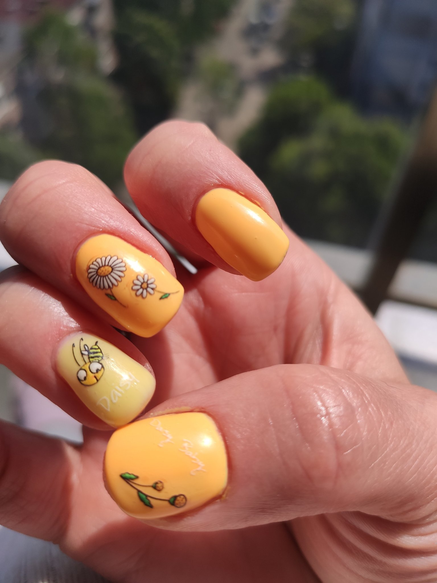 Ето и моят неделен маникюр, който направих по-рано от планираното. Осъзнах, че квадратната форма не е за мен, постоянно закачам някой ъгъл и преправям, та след две седмици носене се разделих с него.