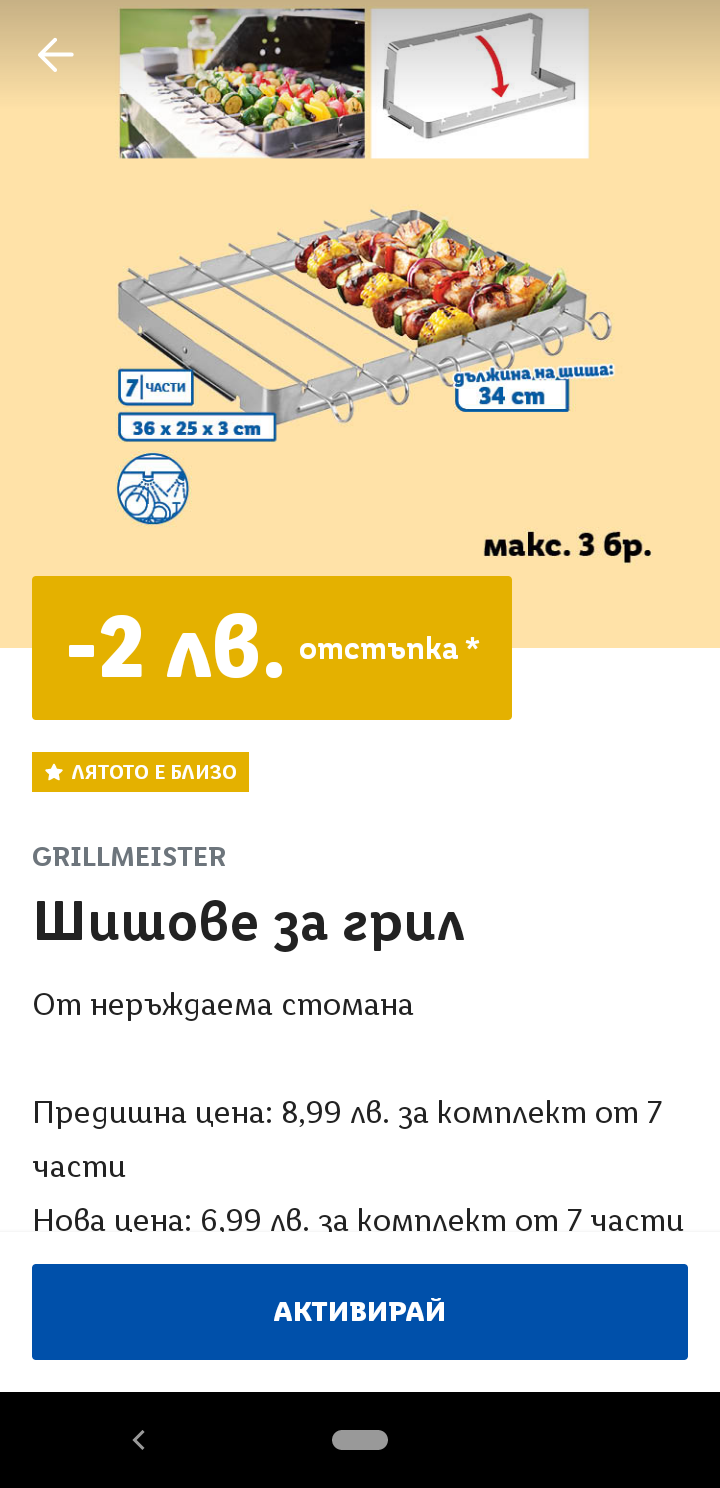 Препоръчвам скарата за шишчета с купон от 2 лева, много качествен материал е.