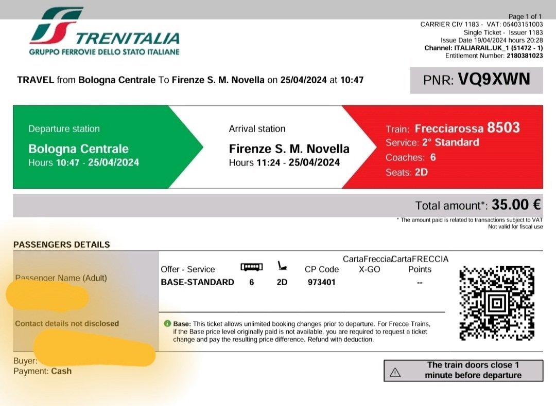 Момичета, купих билети за влака Болония -Флоренция, но през сайта ItaliaRail и ми изпратиха това.