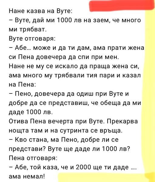 - Ми како, ако давеш още 5 лева, ще ти кажа как да се измъкнеш от кръговото.