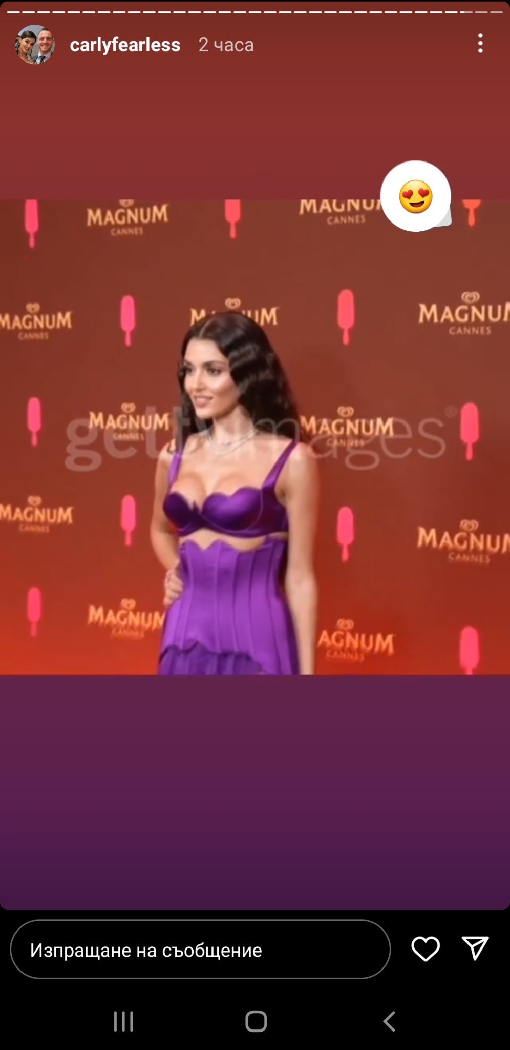 Невероятно красива жена. Сякаш е извънземна. Роклята също е много хубава. В любимият ми "теменужен" цвят. Стайлингът и е прекрасен. Без излишна пампозност, като една малка, изящна статуетка. Толкова се радвам за Ханде. Мястото и е на световната сцена.