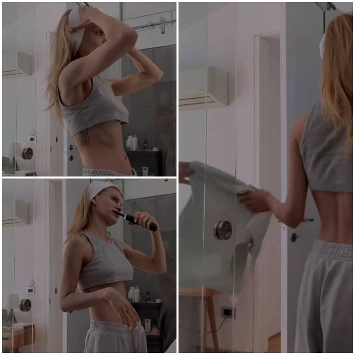 Линде, това е домът й ( поне така си мисля ). Ако се сещаш преди време беше пуснала стори от спалнята си с двете бутилки вода. Нощното шкафче, даже отново се вижда. Просто сега се е снимала от банята..