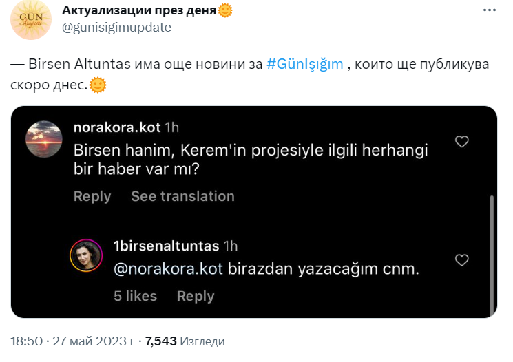 Имаме харесване от Йозге. Май досега не съм виждала да е харесвала нещо с Ханде.