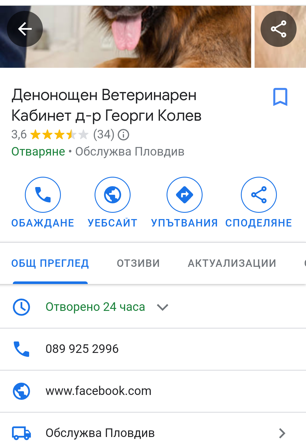 Наистина не знам името на доктора, като звъннах изписа денонощна ветеринарна клиника, но веднага вдигна телефона.