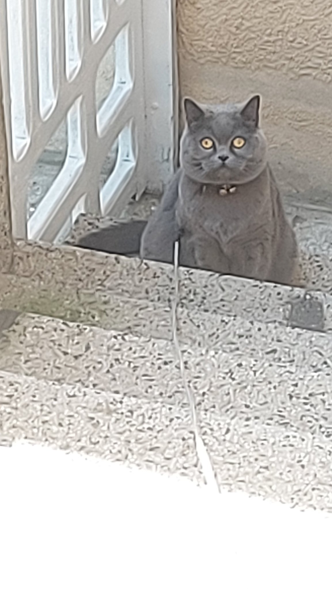 Съседката успя да го хване с транспортната клетка на големият си котарак. И си се гледат у дома. В началото е бил много стресиран, най-вероятно ги е съскал. Сега и с хора и голям котарак се гушка.