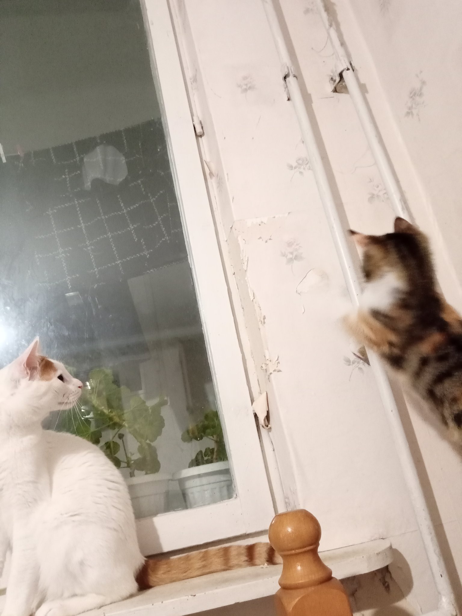 Вчера бялия котарак отвън хвана това малкото и тръгна. Немога да сваря да бързам да го хвана. Ама му знам слабото място и си взех бебока. Може би искаше да ги прибере ама пак си изяде боя. Да нее се меси в женски работи 🤣😂😂🤣😂