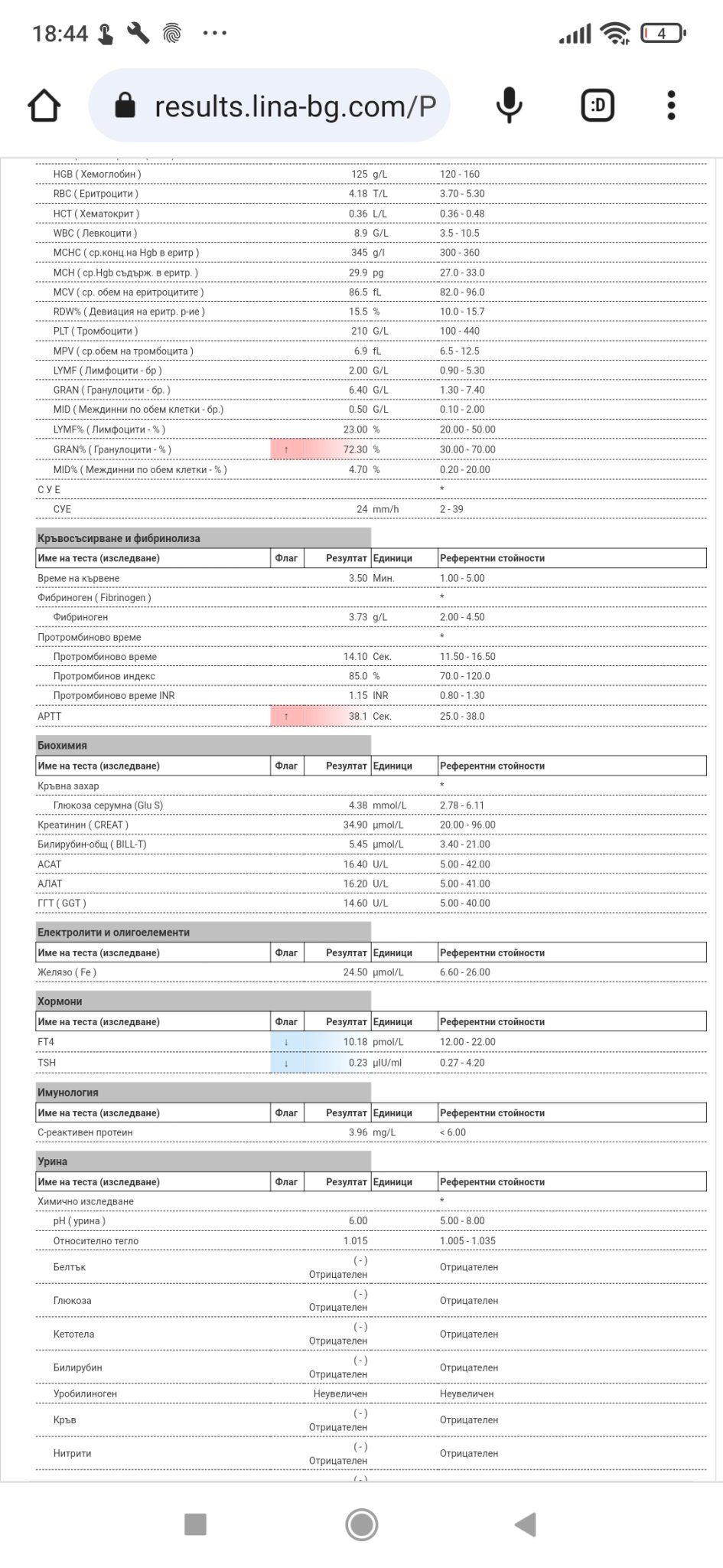 Георги какво мислиш за много ниската пикочна киселина...дали е от бременността нещо...до сега винаги ми е била около 200...в понеделник ще питам и АГ....и това Аптт 38...показва по разредена кръв...която също незнам защо....понеже не приемам нищо за разреждане..