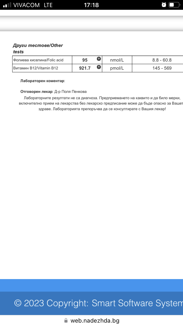 Jakito, спирай фолата и Б12, доста са ти високи, а прекалено високите нива също не са хубави.