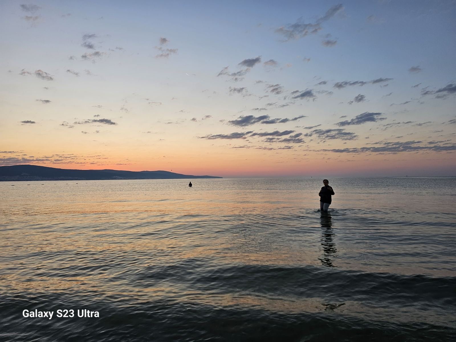 Ето ме и мен в топлите води на морето минути преди изгрева 😃 Отвън беше студен бриз, но прегръдката на морето сгрява всяко ❤️