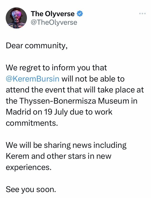 Керем няма да бъде в Мадрид на 19 юли, остава за друг път 😒