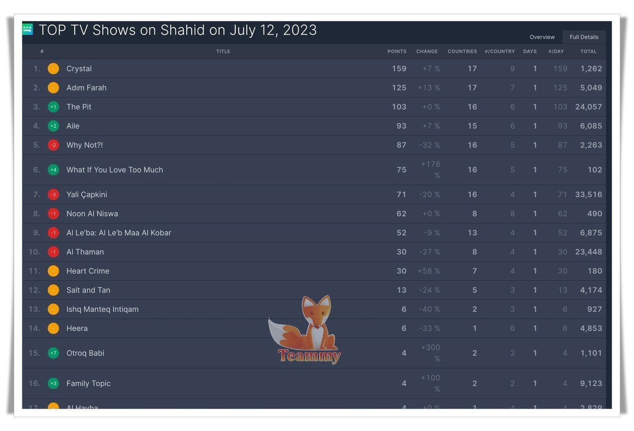 Добър старт на сериала на Shahid - на 6-о място сред всички сериала на платформата.