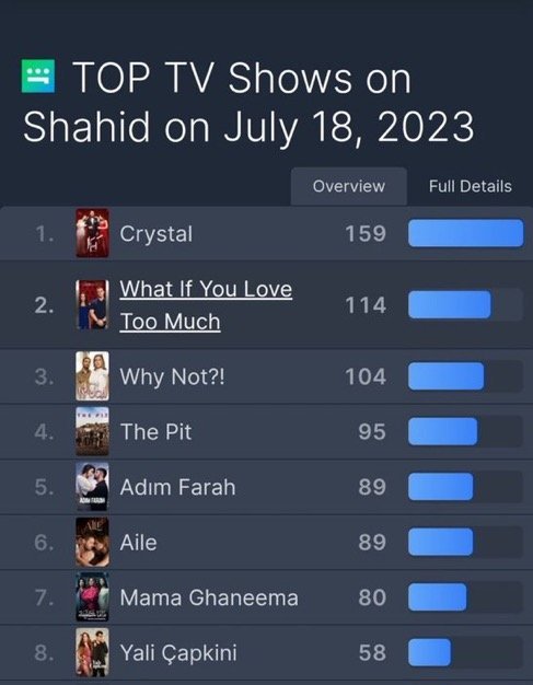 Сериалът ни днес е на 2. място в списъка с най-гледани на платформата Shahid, вчера е бил на 5. В топ 10 е на 40 държави ✨