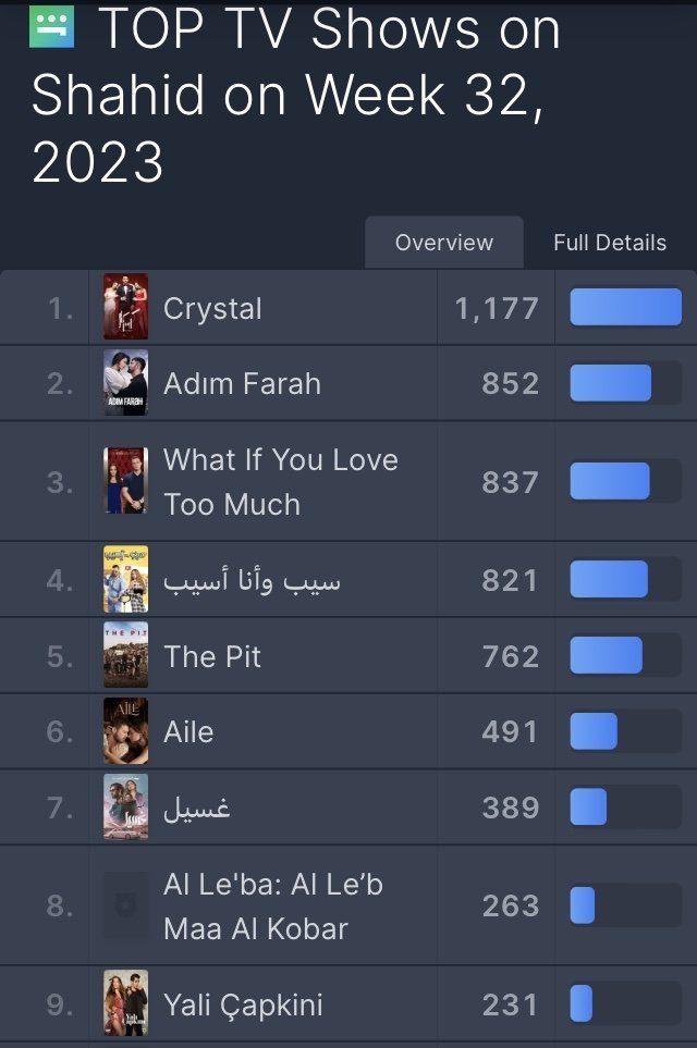 Малко информация за представянето на сериала извън Турция. За изминалата седмица е на първо място на руската платформа Ivi и в топ 3 на арабската Shahid ✨🤘
