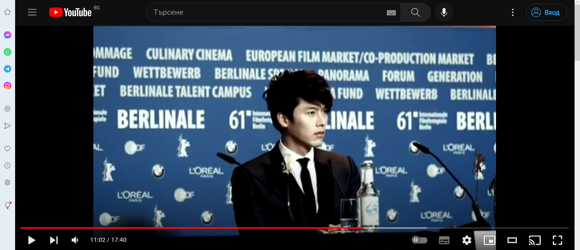 Ох, още ме е яд, исках да покажа още 2 снимки на Джин-Бин с малко по-добро качество, вчера писах че ги срещнах в друго видео. Бинчо наистина купува вино, поне така пише под снимката, явно за предстоящата романтика  а дамата му го чака малко по-встрани, ама добре се виждат снимани отдалеч...hahaha Снощи преди да хвръкне всичко гледах и едни видеа, тях ще ги намеря лесно, ама няма да е сега, в някакви моменти е голям отворко по интервюта, а в друг доста смутен сякаш не е в тоя бизнес от години.... Става, сяда, за момент се обръща с гръб да се успокои Joy Сон Йе Джин е много приказлива подобно на ггероинята си в сериала. Каза за него че бил интроверт, бяха в предаване с истинкска публика, представяха филма си, не знам фенове, или журналисти ги разпитваха... Някой каза че вече са видели героите им във филма, харесали ги заедно, объркаха името на неговия герой и излезе нещо двусмислено и пак го смутиха и той пак стана, тъкмо седна и ги започнаха че добре им се получило но какви били отношенията им извън работа. Лека пауза и споглеждане.... Колежката каза че и е любимия актьор и че и е като брат, в тоя момент Бинчо погледна към ръцете си които бяха в скута му,  взе да си оправя идеалните дрехи, обърна глава на другата страна докато се опитваше да спре да се смее Joy Скрити лимонки такива!