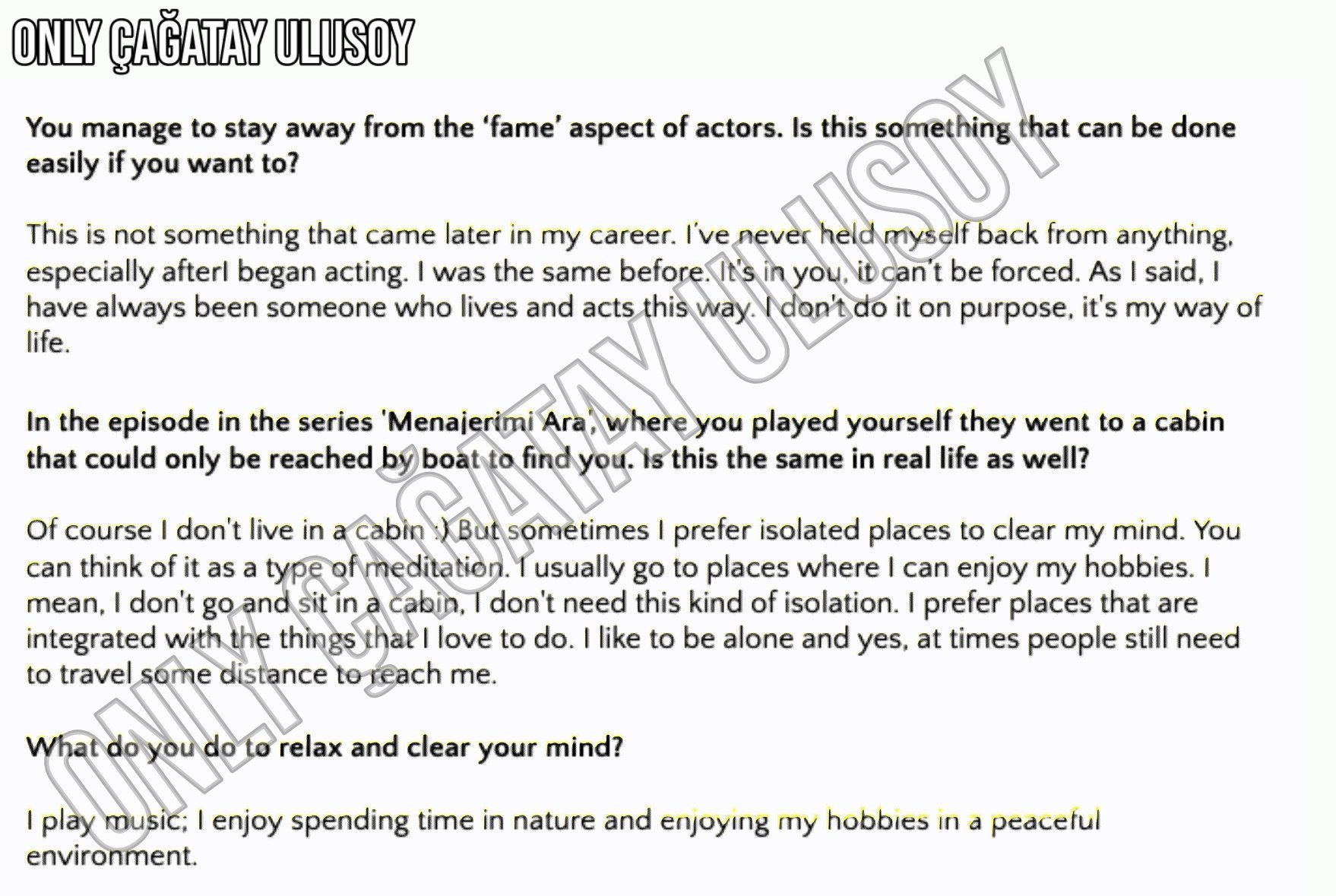 ''Чаатай е наистина амбициозен и обича да прави филми. Той не е само актьор, но също така се интересува от писане на сценарии, заснемане на късометражни филми и участва в целия творчески процес без значене в кой проект играе.