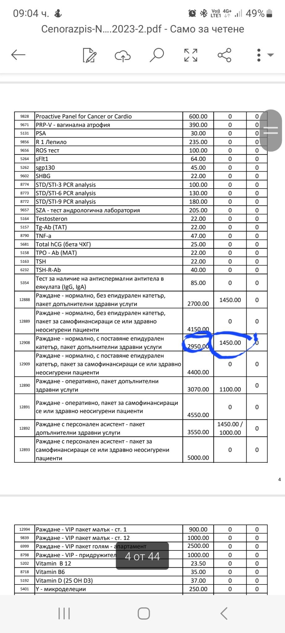 Видях ценоразписа и точно затова писах,  защото не ми стана ясно защо има две цени: плащане от пациента 2950лв, плащане от НЗОК- 1450лв.