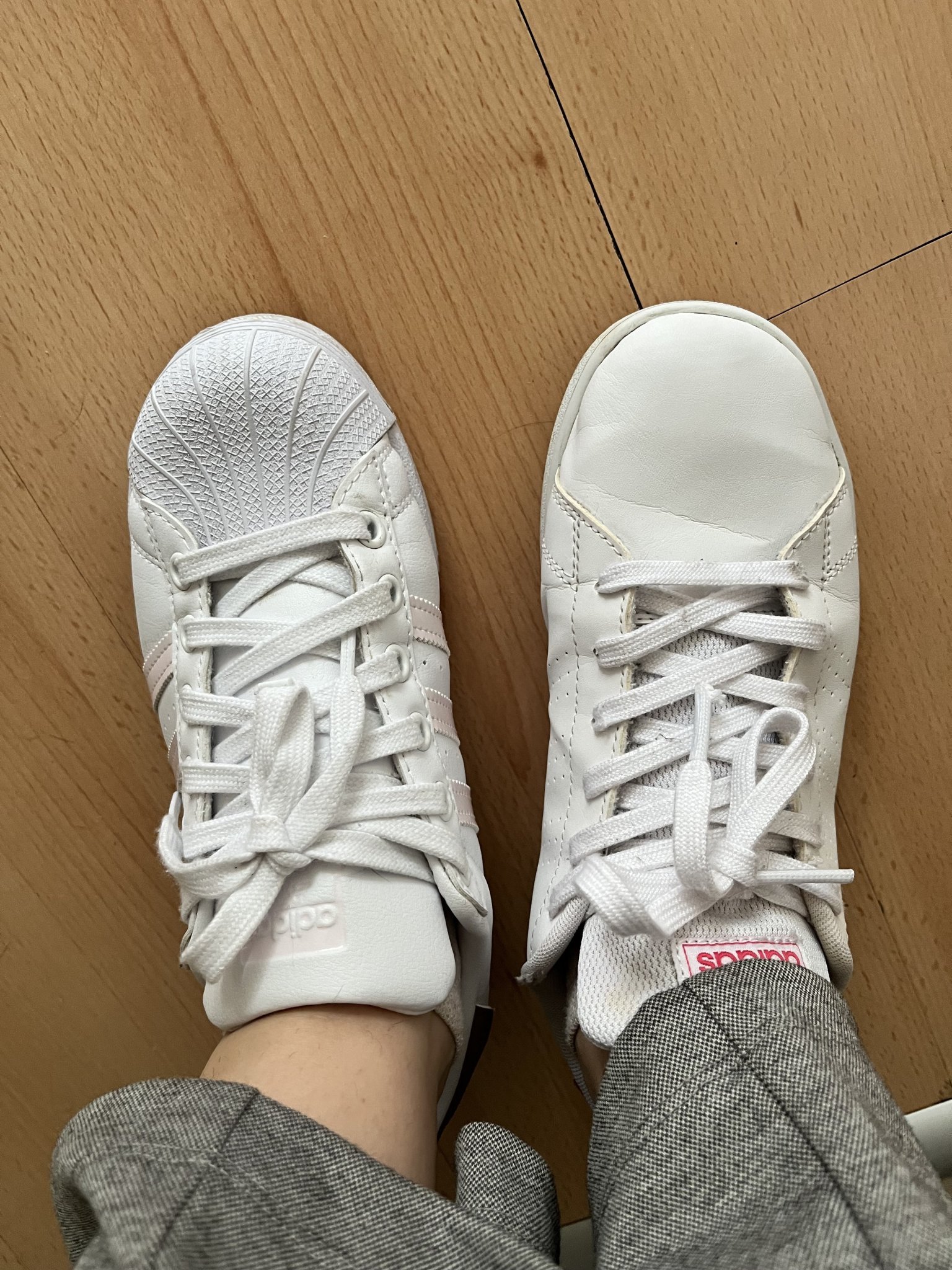 Относно обувките много се смях, но поне и двете са на една марка😄 .