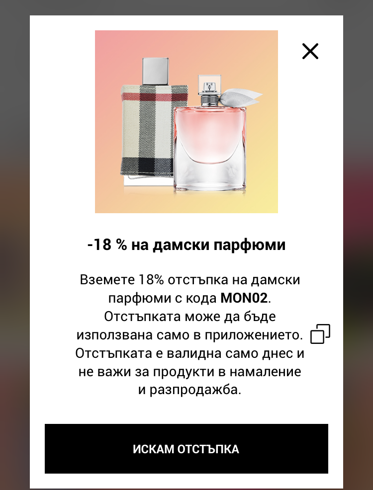 Безплатна доставка на всичко в Нотино и код за 18% на дамски парфюми през приложението.