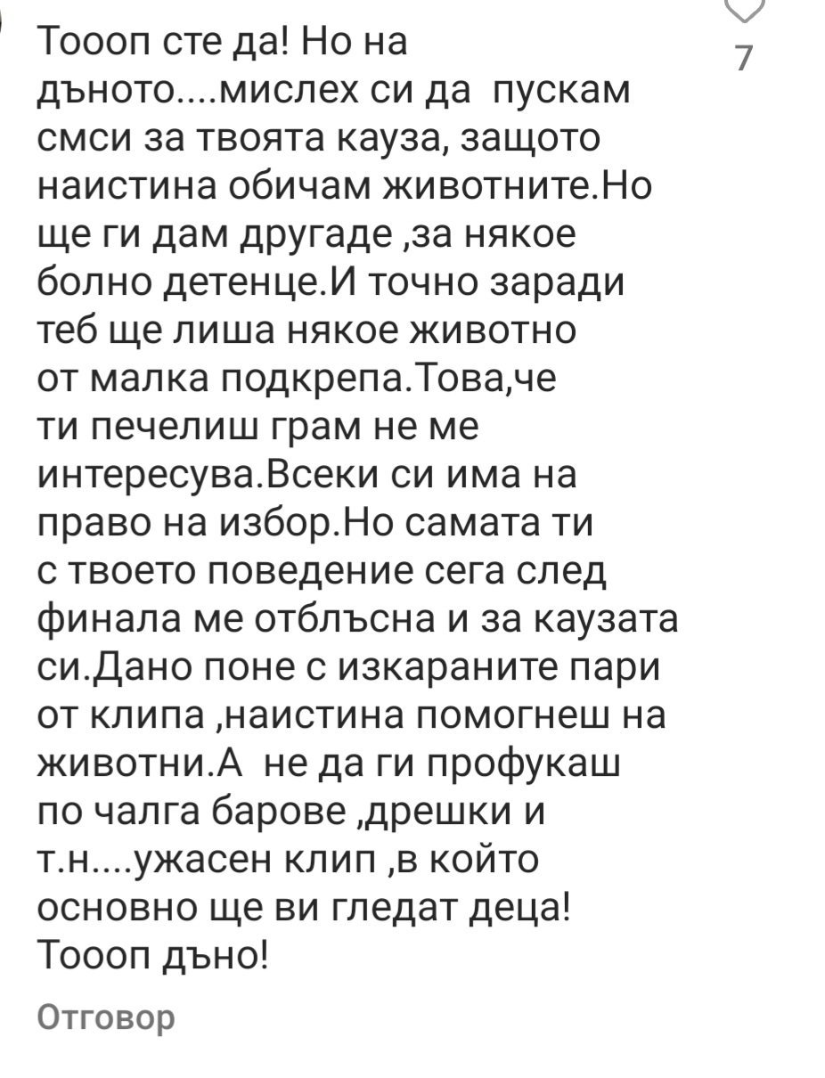 Реших да нагледам ИГ,защото не вярвах че чак такъв хейт се лее и попаднах на този коментар под снимка на трите грации от клипа на Джия.