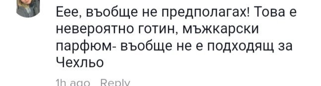 Мислех си за Фаренхайт, обаче Евгени ми изглеждаше като да е на ти с ниша и да го предпочита. Айлин я изслушах, защото ми беше любопитно кой е парфюма на Елена, който е харесала и си е купила след това. Miu Miu Twist е за тези, които се интересуват. А на Айлин парфюмите са Roses Musk, Amber Oud Gold и Good Girl Legere.