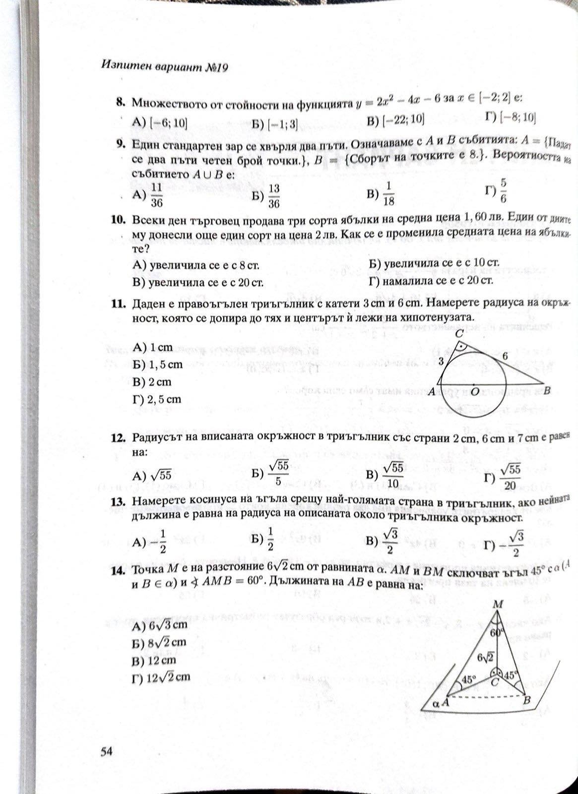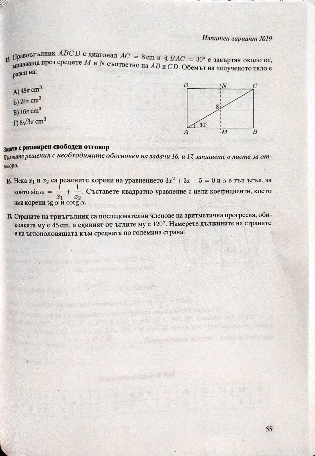 Вчера моя приятелка, но проклета майка - тормозител, ме помоли да реша цял тест от някакво помагало, което отрочето решавало в стаята си самостоятелно. Не може да се сравнява нивото на днешното НВО с въпросния тест. Особено в частта с вероятността, с ортогоналните проекции, с квадратното с корени тангенс и котангенс. И за да не съм голословна, пускам снимките от майката: