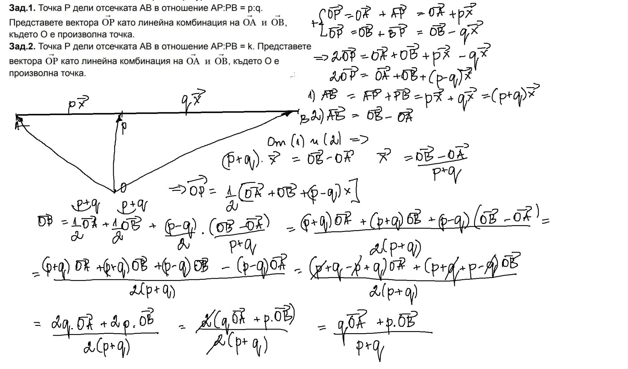За втората е същото, само замествате в крайния отговор съответно с k и 1, понеже отношението този път е k:1  а не  p:q.