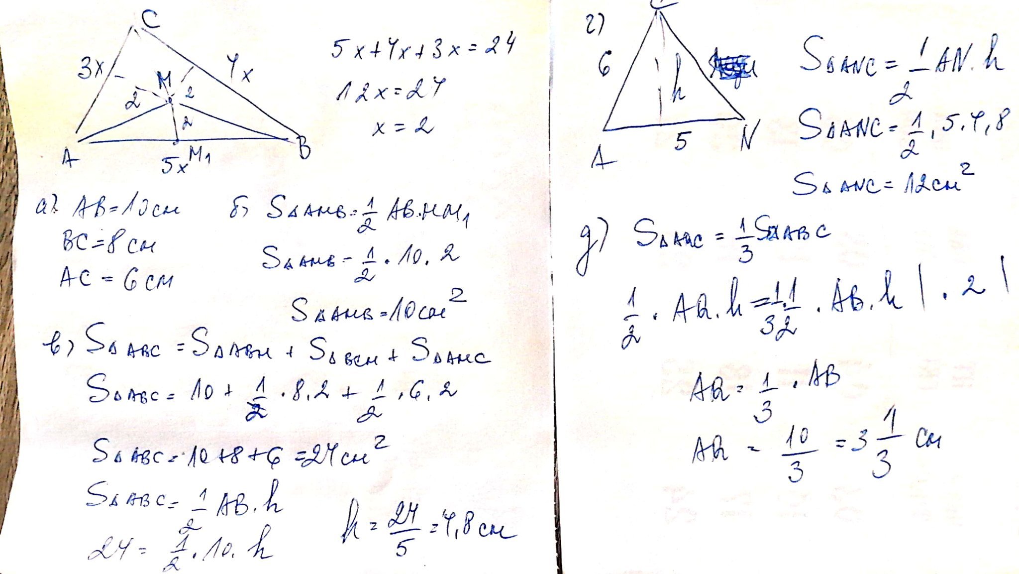1.Лицето на триъгълника ABC e  S,  като АМ = 1/3 АС  и  AN = 4/5 АВ. Лицето на четириъгълника MNBC, изразено чрез S,  е :