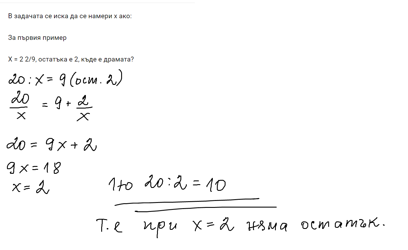 Х = 2 2/9, остатъка е 2, къде е драмата?