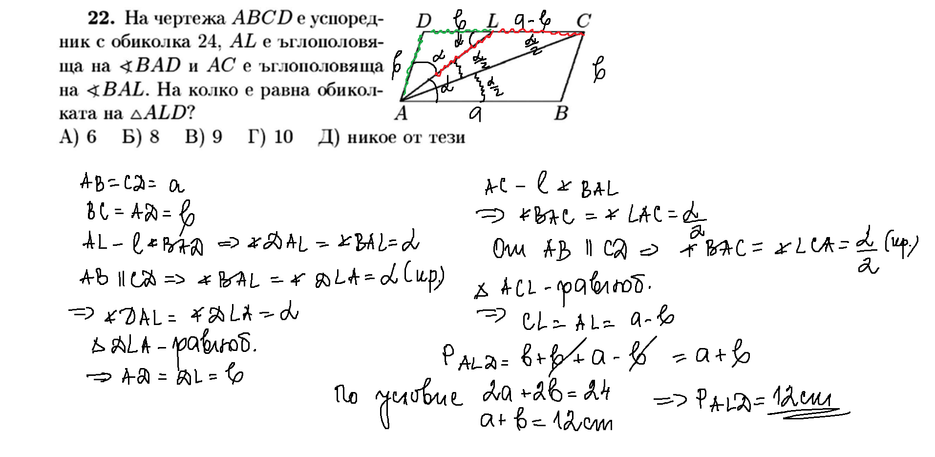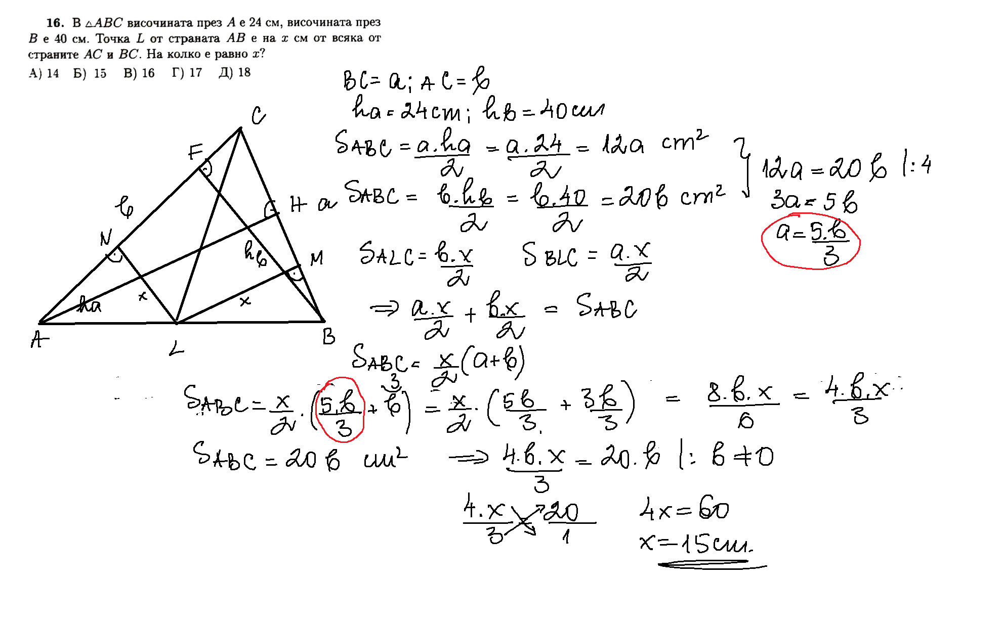 Точките А, B и L нали лежат на една права? Кои са а и b? Не са ли АС и ВС? Нещо съвсем се оплетох във втората част на решението...