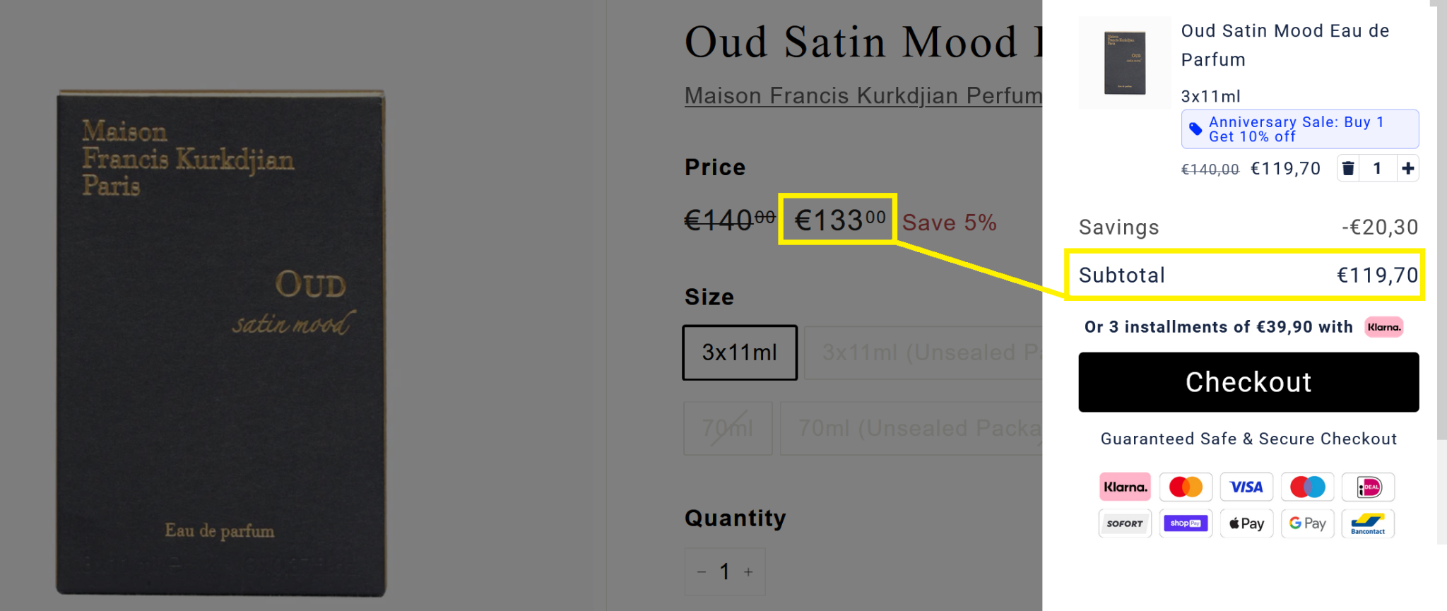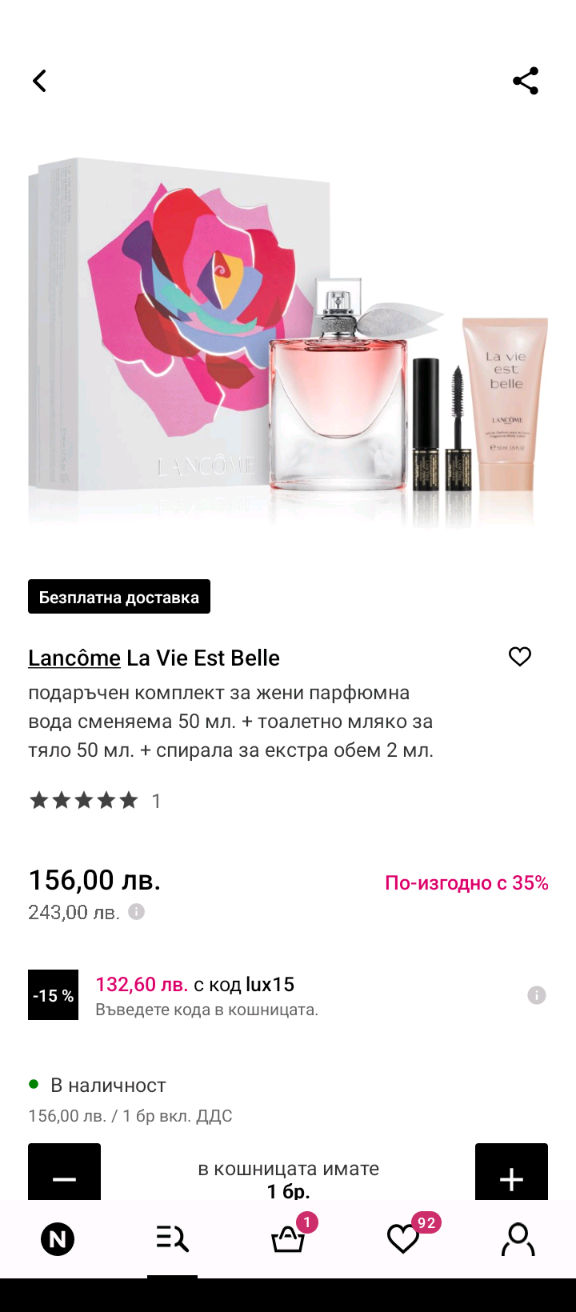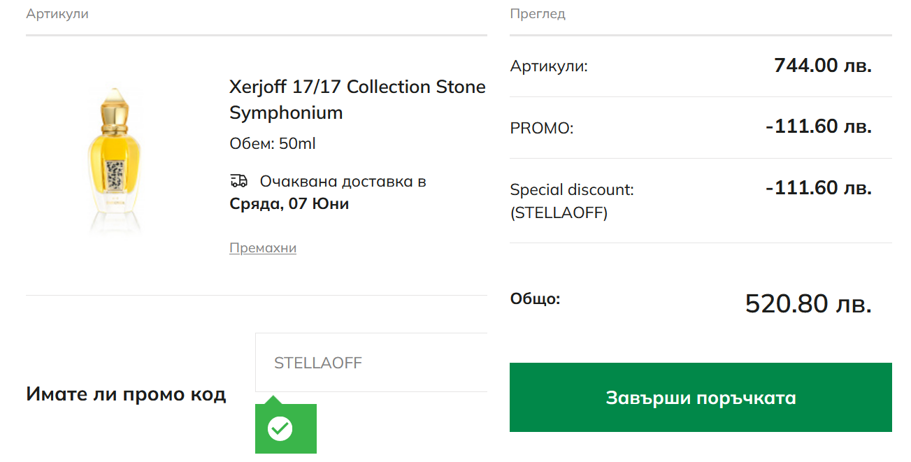 Доставката е до БГ е 15 евро, но може да се спести чрез испански превозвач. При финализиране на поръчката може да добавите 12 х 0.3 мл мостри (това е за суми между 100 и 200 евро, пишат се ръчно в полето с бележки) от целият им каталог с нишови неща.