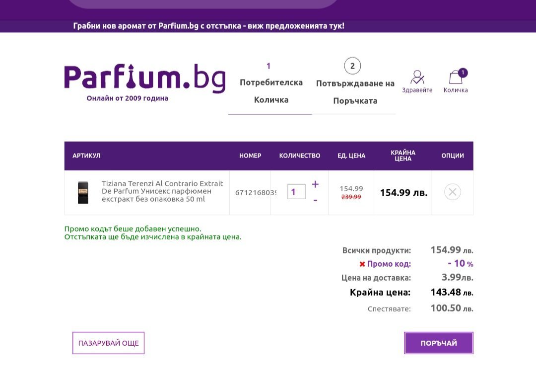Има ли нов код за -10% над 100 лв в parfium.bg?